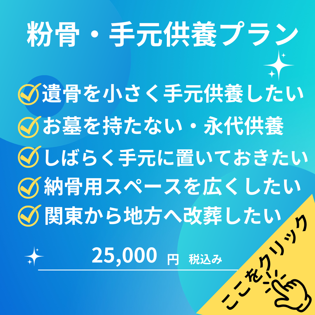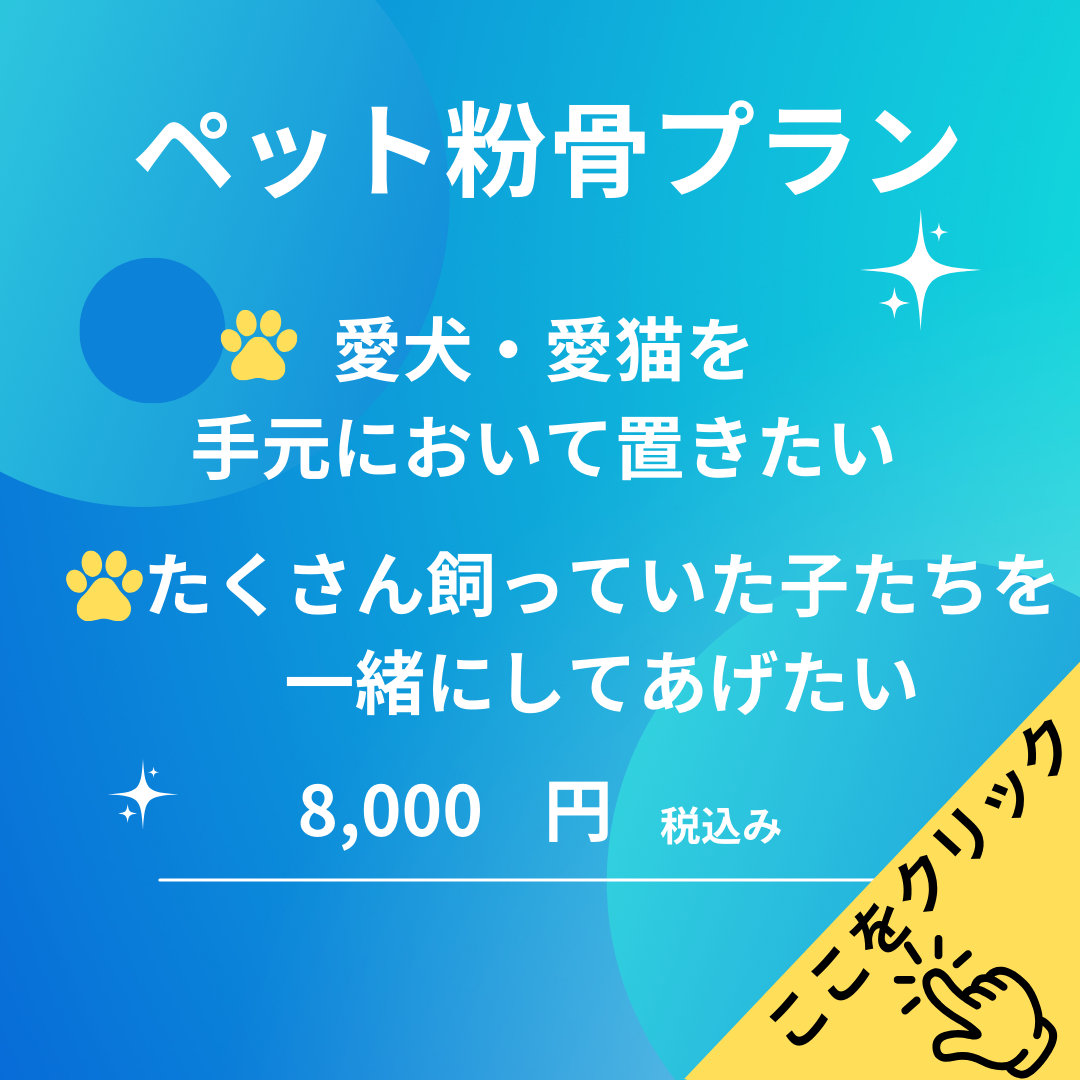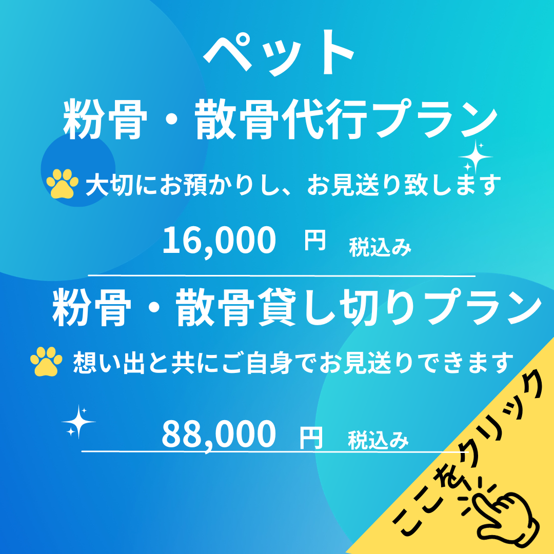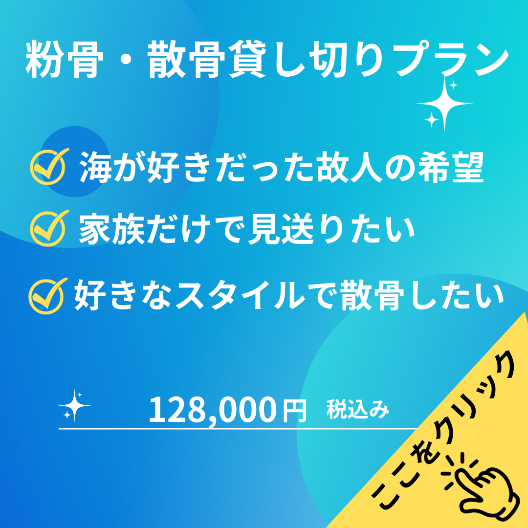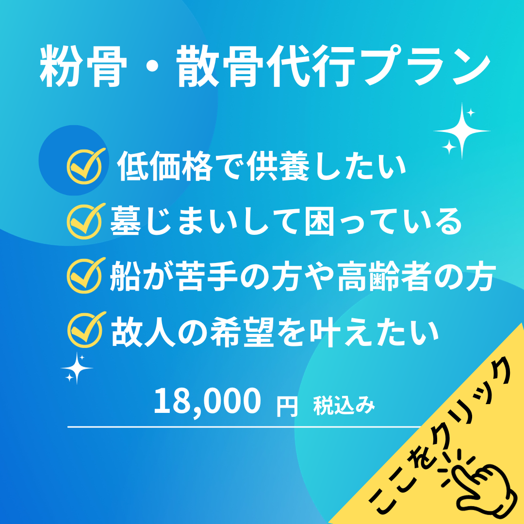 よりそう粉骨 ご遺骨を粉末する方々は年々増えています。粉骨代行サービスを使うことで、遺族の精神的な負担を大幅に軽減することができます。遺骨をきれいなパウダー化にすることで骨壺のサイズを小さくすることができたり、真空パックにして長期間カビを防ぐことができるようになります。 お墓をもたない・墓じまい お墓をもたないひとは年々増えています。手元供養・永代供養とご遺骨を小さくする方法もあります。 ご遺骨を粉骨(パウダー化)してから、カビなどを防ぐためしっかりと真空パックし桐箱にお入れしてお渡しいたします。 ※お墓に埋葬してあったご遺骨は、湿気を多く含んでいるため、洗骨してから更に乾燥もいたします。 洗骨料金 12,000円 乾燥料金 12,00円 別途必要です。 散骨代行 代行散骨プランは、船の乗船が苦手な方、乗船が難しい方、私共が大切なご遺骨をお預かりし、ご遺族様の代理としてスタッフが真心を込めて故人様をお見送りさせていただきます。 多くの方にご利用いただけるよう、リーズナブルな価格です。 散骨貸し切りプラン 散骨貸し切り(チャーター)プランはご家族様、ご友人様のみでご乗船され自由にゆくっりと故人様を偲び散骨していただけるプランです。 お好きなスタイルでお見送りができます。 愛犬・愛猫粉骨プラン 大切な愛犬・愛猫ちゃんの粉骨は、小さくするだけでなく心落ち着くまでおそばにおいて置くことができます。 ペット散骨プラン ★散骨代行 大切な愛犬・愛猫ちゃんも自然に還る散骨もできます。散骨代行飼い主様に代わって動物好きの我がスタッフが心を込めてお見送りさせていただきます。 ★愛犬・愛猫ちゃん散骨 飼い主様、ご自身でお好きなスタイルでお見送りできます。 東京から出航はディズニーランド沖・羽田沖 神奈川県お住まいの方へ横浜周辺での散骨もできます。 料金プラン 散骨プラン 東京湾 ゆとりある海洋散骨なりますので故人様との大切なお別れの時間を過ごすことができます。故人様が好きだった音楽を流したり、思い出の写真などを飾ったりもできます。 チャーター散骨プラン 貸し切りチャーター散骨プランはご家族様、ご友人様のみでご乗船され自由にゆくっりと故人様を偲び散骨していただけるプランです。 プラン概要 定員 / 推奨人数 8名 日時 / ご希望日時 所要時間 / 1.5~2時間 散骨海域 / 東京湾他 乗下船場所 / 朝潮小型船乗り場(勝どき)他 チャーター散骨当日の流れ (例)14時出航の場合 13:50 桟橋に集合 14:00 乗船 海洋散骨の仕方や注意点をご案内します 14:30 散骨ポイントに到着~海洋散骨式 ① 開式 ② 黙祷 ③ 代表者挨拶 ④ 献花 ⑤ お別れ ⑥ フラワーシャワー(お花をお手向け) ⑦ 黙祷 ⑧ 閉式 閉式後、お花周りを旋回して帰船します 16:00 下船 散骨代行プラン 代行散骨プランは、船の乗船が苦手な方、乗船が難しい方、私共が大切なご遺骨をお預かりし、ご遺族様の代理としてスタッフが真心を込めて故人様をお見送りさせていただきます。 多くの方にご利用いただけるよう、リーズナブルな価格です。 プラン概要 日時 / 月に一回の頻度で行います。日時指定はできません。 所要時間 / 約2時間 散骨海域 / 東京湾 ☆乗り合いメモリアルクルーズ 散骨されたご家族のために、毎月乗り合いメモリアルクルーズを実施しております。 10,000円(税込11,000円) 代行散骨当日の流れ 14:30 散骨ポイントに到着~海洋散骨式 ① 献花 ② お別れ ③ フラワーシャワー(お花をお手向け) メモリアルチャータークルーズ(法要) 海へのお墓参り「メモリアルクルーズ」散骨を行った海域へ向かうお参りのためのクルーズです。 初七日から始まり、四十九日法要、一回忌、三周忌、七周忌、葬儀後の初七日、五十七日、七七日など、亡くなってからの期間ごとに行う法要・法事にもご利用可能です。